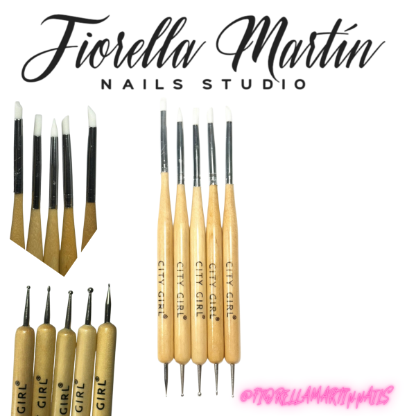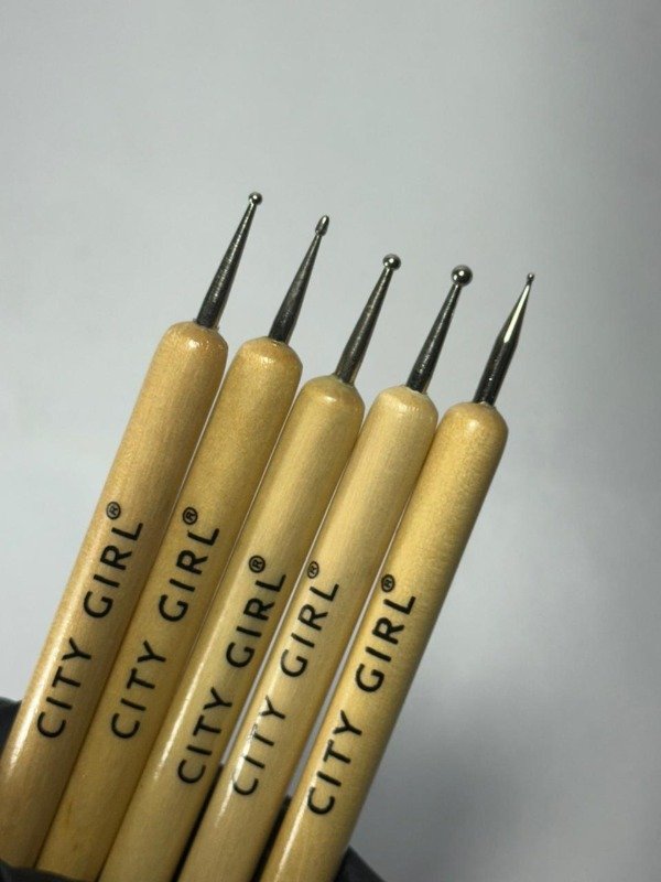 CITY GIRL PINCELES DE MADERA DOBLE PUNTAS, 5 UNIDADES, PINCELES DE SILICONA CON DISTINTAS PUNTAS Y DOTTINGS CON DISTINTAS PUNTAS