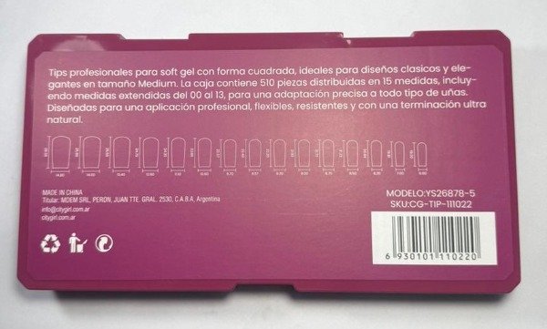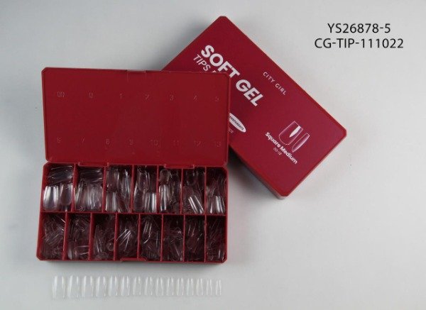 NUEVOS TIPS DE SOFT GEL CITY GIRL, CAJA DE 510UNIDADES, CONTIENE TIPS DEL 00 AL 13, CONTIENEN LA CURVA C MARCADA.